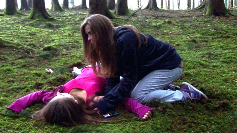 Hanna (Josephine Roy) und Caro (Magdalena Knödler) joggen arglos durch den Wald. Als Caro schließlich eine kurze Verschnaufpause benötigt, vereinbaren die beiden einen Treffpunkt und trennen sich.